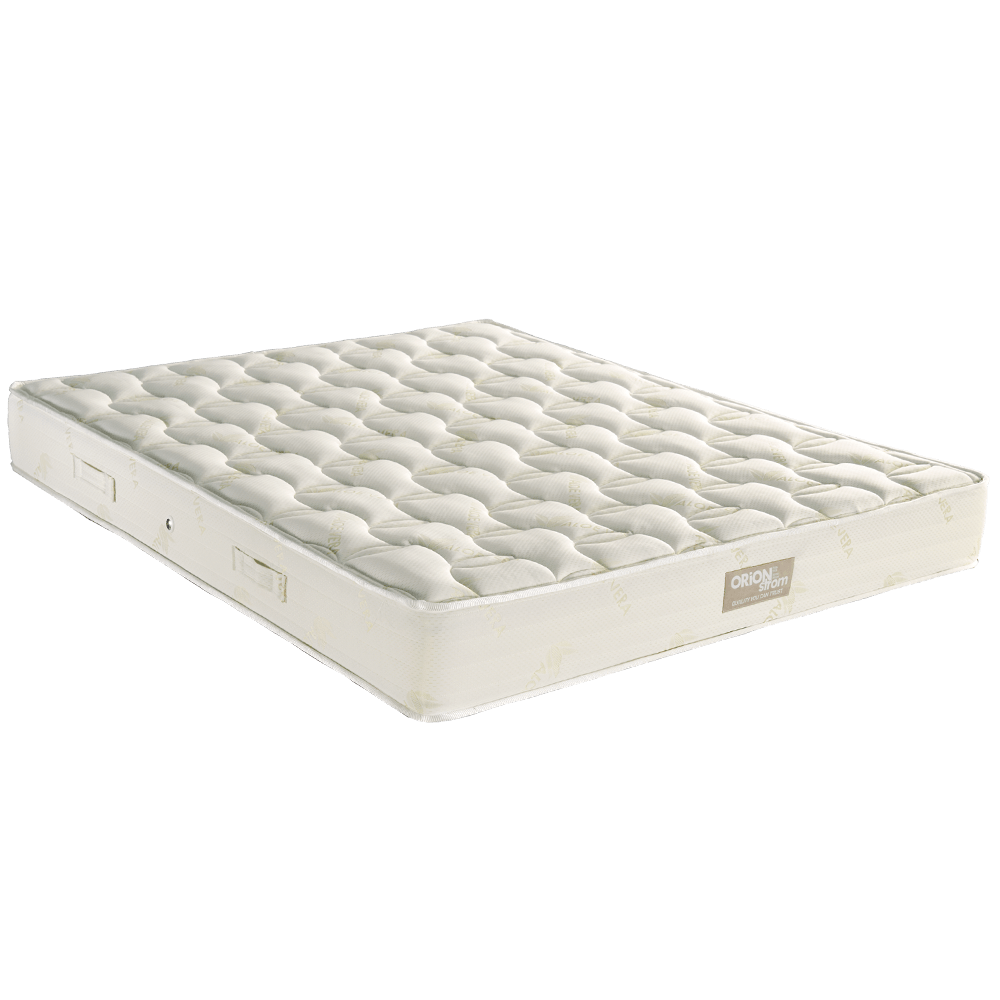 E03 Στρώμα Aloe Vera μέτριας σκληρότητας με ελατήρια bonnell και ύφασμα που προσφέρει υποαλλεργικές ιδιότητες και ρυθμίζει σωστά τη θερμοκρασία της επιφάνειας. Διαθέτει βάτα από πολυεστέρα και βαμβάκι.